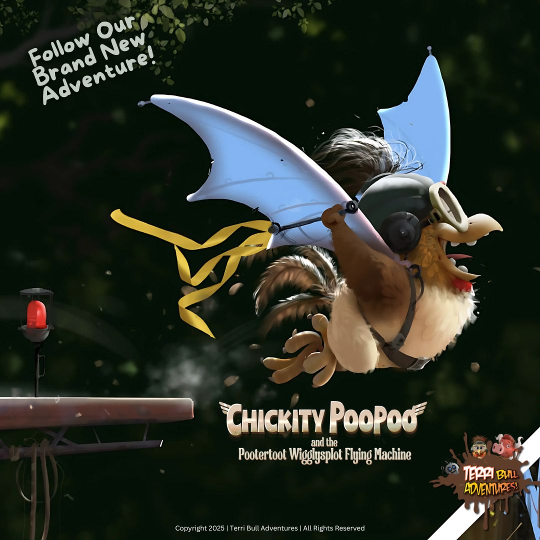Chickity PooPoo and the Pootertoot Wigglysplot Flying Machine Takes Flight!