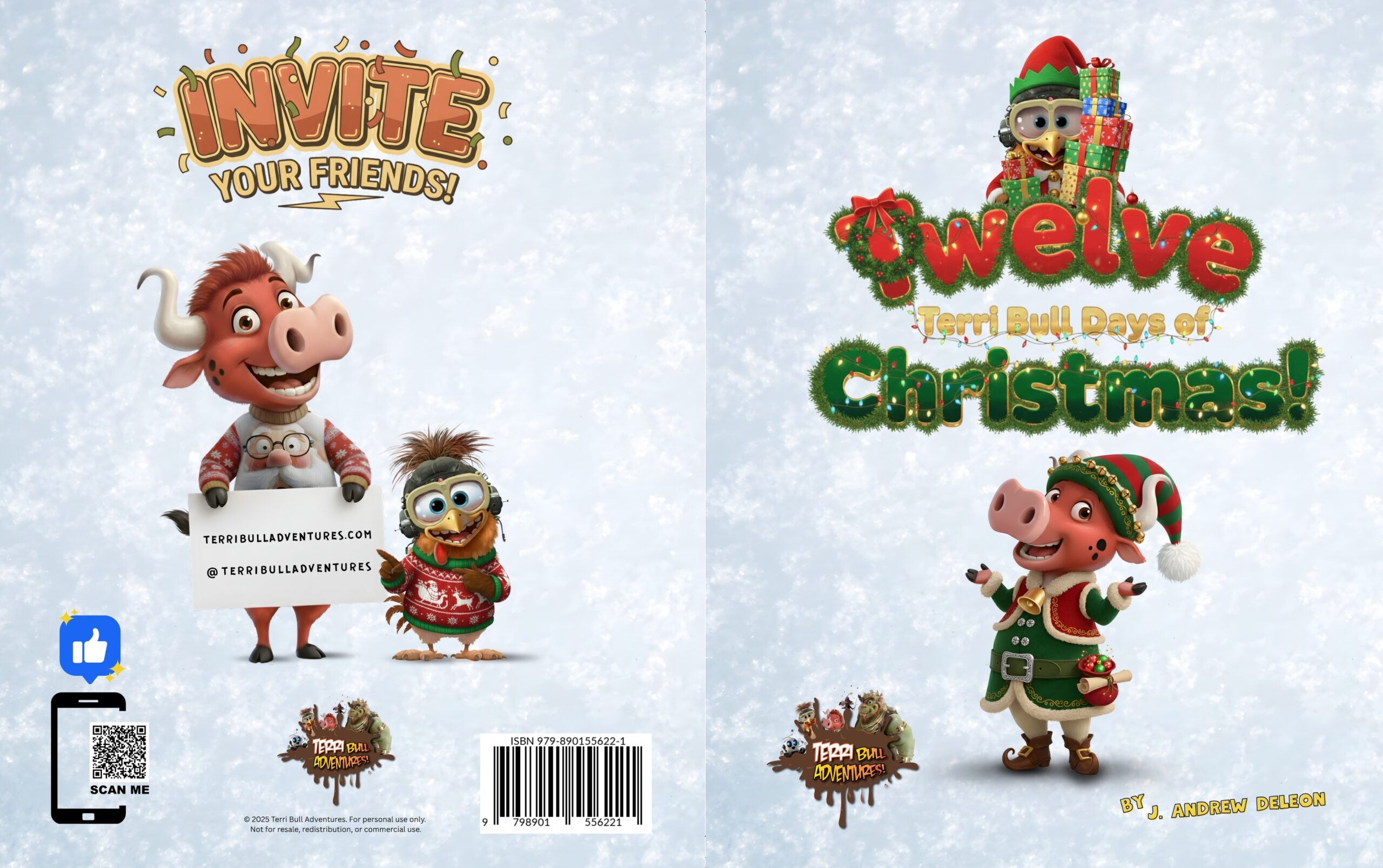 NEW! Twelve Terri Bull Days of Christmas! Terri Bull Adventures FIRST Holiday Picture Book!